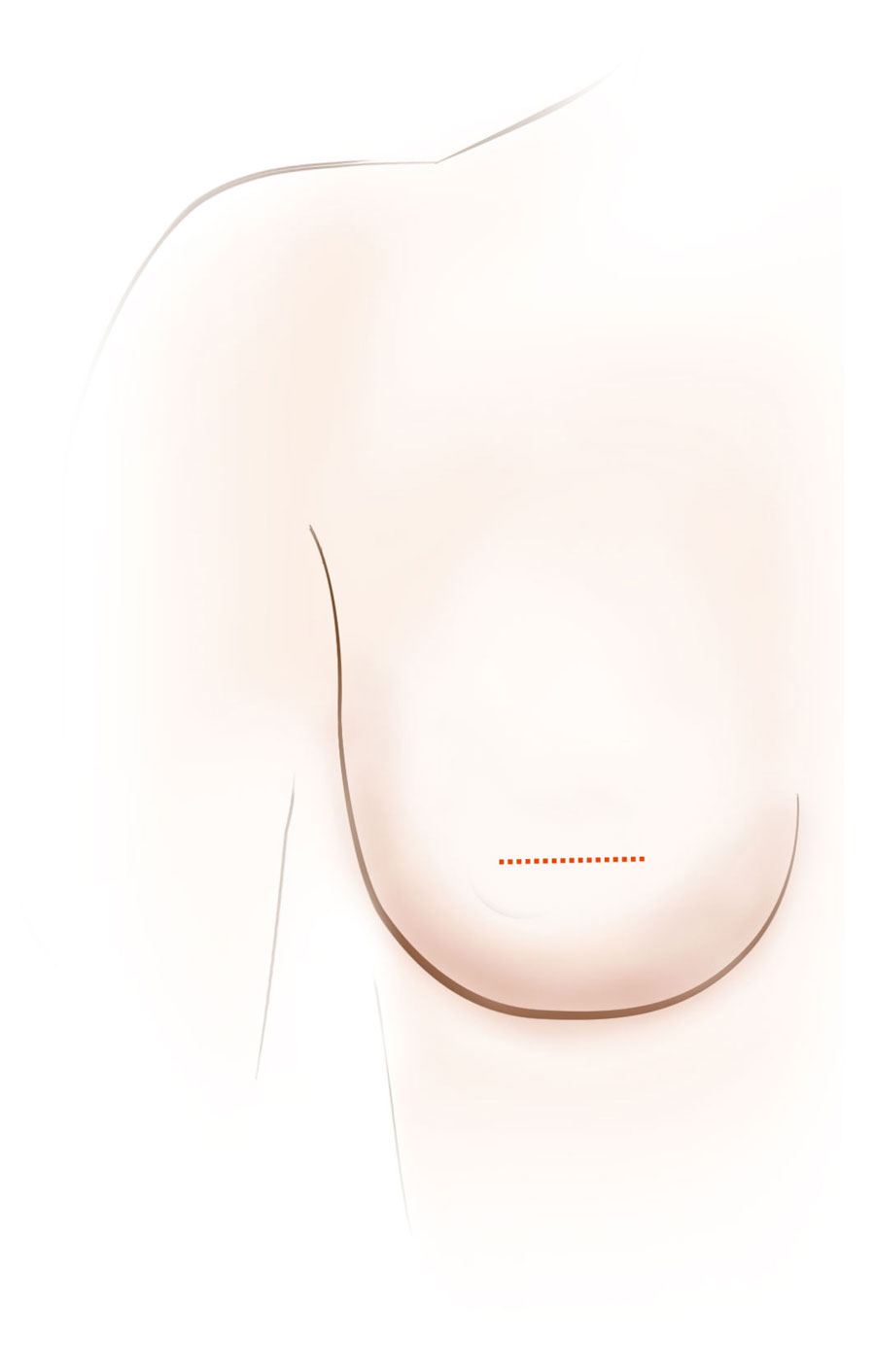In this procedure, all the underlying breast tissue is removed as well as the nipple and areolar complex with sparing of as much of the overlying native breast skin as possible. This can be accomplished through an incision around the areola or a small elliptical incision including the nipple and areola (see illustration). This specialized approach helps the patient undergoing immediate breast reconstruction preserve the natural shape and contour of the breast by keeping the outer envelope of skin intact. Multiple published series have shown that using a skin-sparing approach in cases where immediate breast reconstruction is planned leads to high rates of patient satisfaction without increased risk of recurrence.