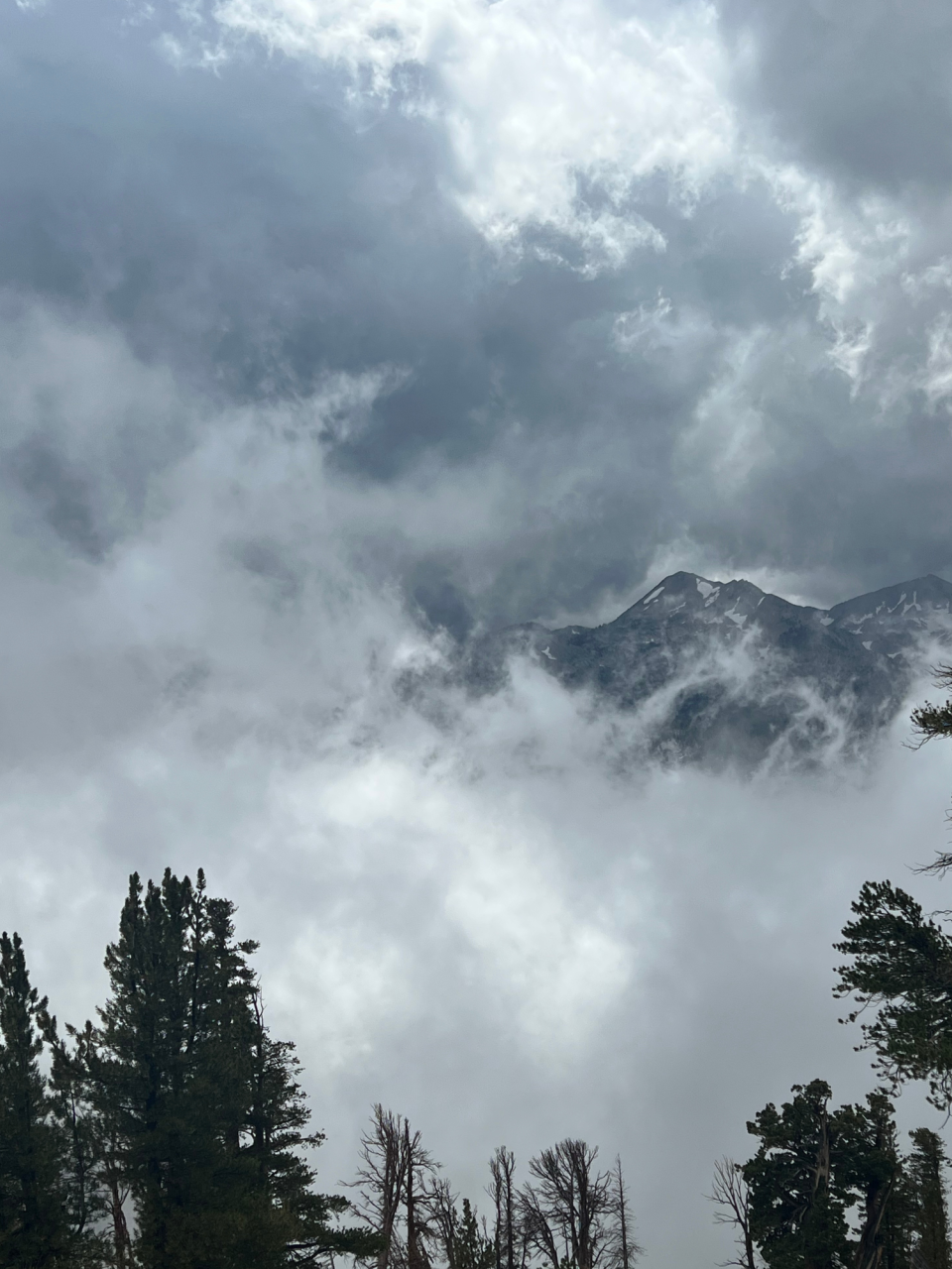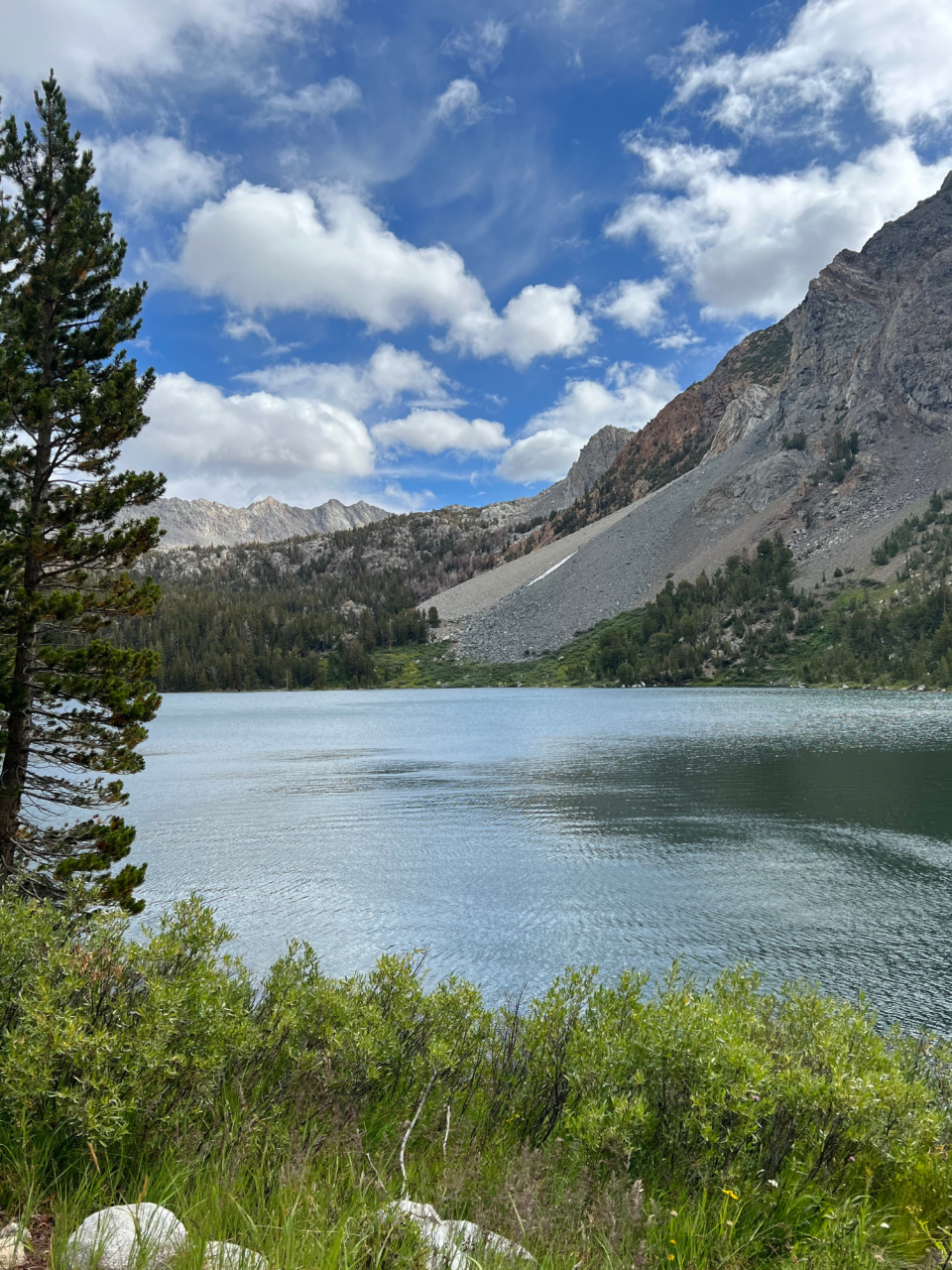 Backpacked 10.3 miles from Red's Meadow to Duck Creek 2800 ft elevation gain, basically hiking uphill all day. Thunder and lightning storm rattled the canyons (truly amazingly loud), rain and hailstorm for half the day, we were cold and wet and miserable. Hid under a tree for some time near a river, started to get concerned about hypothermia a little bit, felt sort of stuck. Clouds broke and we quickly set up tents in a nearby meadow. Sun came out and dried everything in 3 hours. Met a hiker named Rick and he set up tent near ours. He is from just outside Rolling Hills Estate. Business is construction as a contractor. Built Mammoth Gondola and Kaiser Panorama City Hospital as contractor. Lots of trail friends (maybe 2 dozen during whole trip from all over the world).