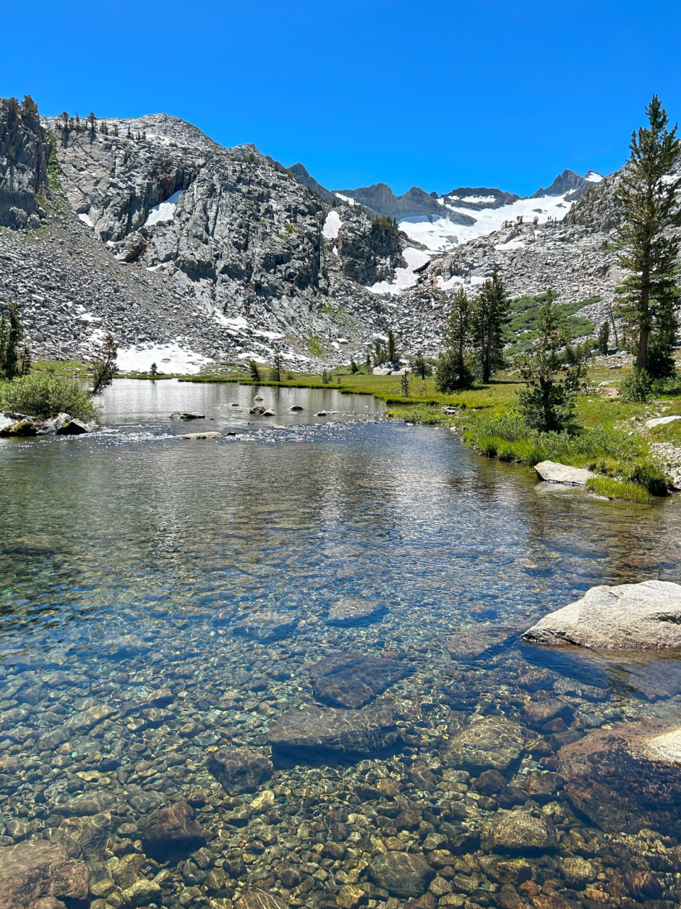 Tons of water (all rivers seemed full and raging), lots of wet river crossings, snow still on northern side of passes (makes it treacherous), lots of trees broken in half from winter snow avalanches requiring lots of extra work to navigate around, EVERYONE on trail friendly (saw maybe 100 backpackers total, going both directions, coming in and out all over the place), some day hikers and some trail runners (very fast and impressive).