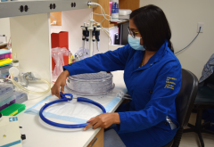 The Eghbali Laboratory's work focuses on the molecular basis of the remodeling of voltage-activated K+ channels in the heart by sex hormones. Dr. Eghbali and her colleagues have identified a key molecule that controls the production of oxidized lipids, and is reduced in the lungs and blood of patients with pulmonary hypertension; this discovery could lead to the development of a new blood test to aid in early detection. Pulmonary hypertension is up to four times more common in women, and Dr. Eghbali's team is leading in the investigation, for the first time, of the role of sex chromosomes in the development of this devastating disease. The Y chromosome appears to be protective, and the team's goal is to identify the gene(s) on the Y chromosome responsible for the protective effect. This research may ultimately explain the prevalence of pulmonary hypertension among women and potentially elucidate a novel therapeutic approach to treatment. In addition, researchers in the Eghbali Laboratory have developed the first model of combined pulmonary fibrosis and pulmonary hypertension in rats, effectively simulating the human disease. They are focusing specifically on the study of a molecule called microRNA 125b-3p. This molecule may serve as a biomarker for disease progression, and may also serve as a therapeutic target for treatment.