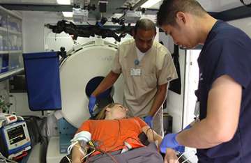 The Stroke Neurologist, either in-person or via an advanced telehealth system, will further assess the patient to determine the severity of the stroke. During this time, the Critical Care Transport Nurse will perform a few simple lab tests on the patient using handheld testing devices, and the CT Technician will prepare for the patient’s imaging scan. All of the results from the lab tests, CT scan, and patient evaluation will be documented in the patient’s electronic medical record, which is immediately viewable by the Stroke Neurologist over the secure wireless network in the MSU.