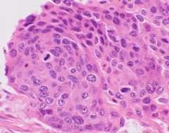 An example of squamous cell carcinoma of the cervix is shown by hematoxylin & eosin stain
