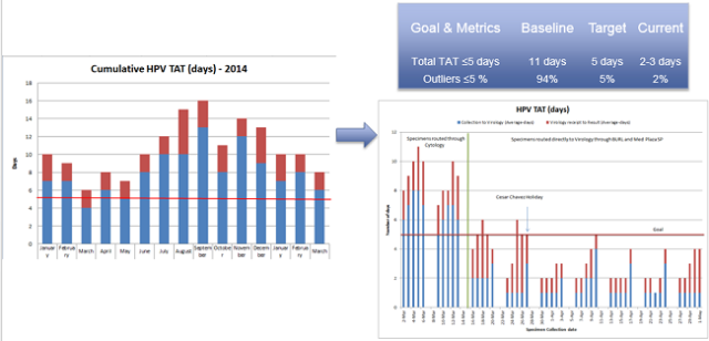 By streamlining our process for specimen hand-offs and aliquoting, we have been able to significantly reduce the TATs on HPV testing.
