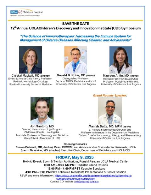 Breadcrumb Home Departments Pediatrics CDI About CDI CDI Events Calendar Sub-navigation About CDI Events Calendar Facts and Figures Leadership and Staff Mission and Vision News About CDI More Close Events Calendar Facts and Figures Leadership and Staff Mission and Vision News Close UCLA Children's Discovery and Innovation Institute News (CDI News) View Publication View Publication View Publication View CDI Seed Grant Program View Publication