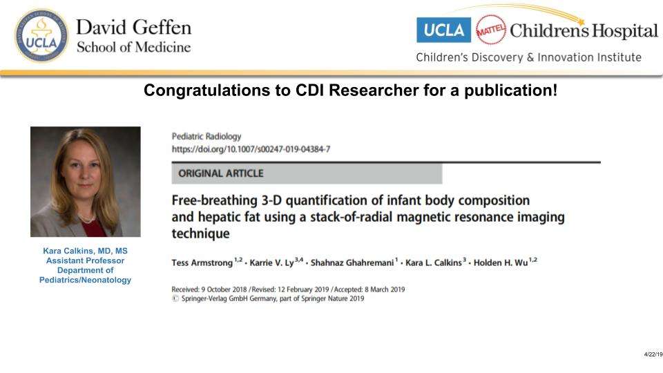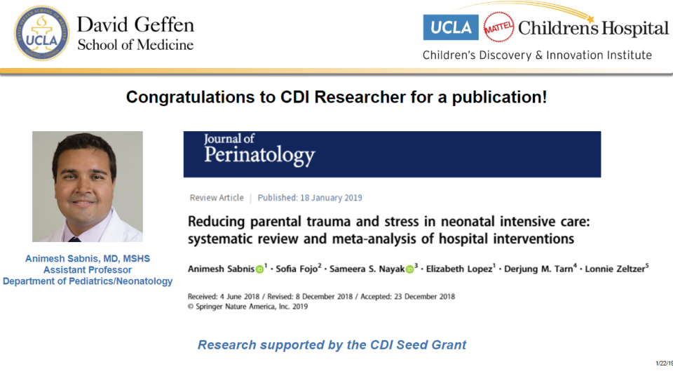 Lead by the Children's Discovery and Innovation Institute's Executive Director, Sherin Devaskar, UCLA scientists have discovered specific genetic changes in the placentas of women who gave birth to growth-restricted infants. These changes appear to sabotage the ability of the placenta to grow blood vessels and adequately nourish the fetus, interfering with the infant’s growth in the womb. [read full story]
