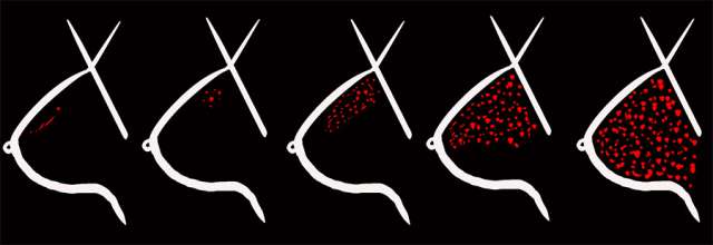 - Segmental: calcifications follow the anatomic triangular shape of a breast lobe with tip towards the nipple. These require further evaluation.
