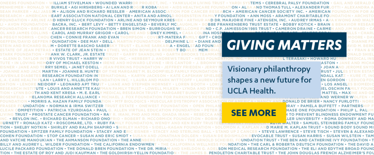 To learn more about any aspect of giving to UCLA Health, please contact us at 310-206-6484 or [email protected].