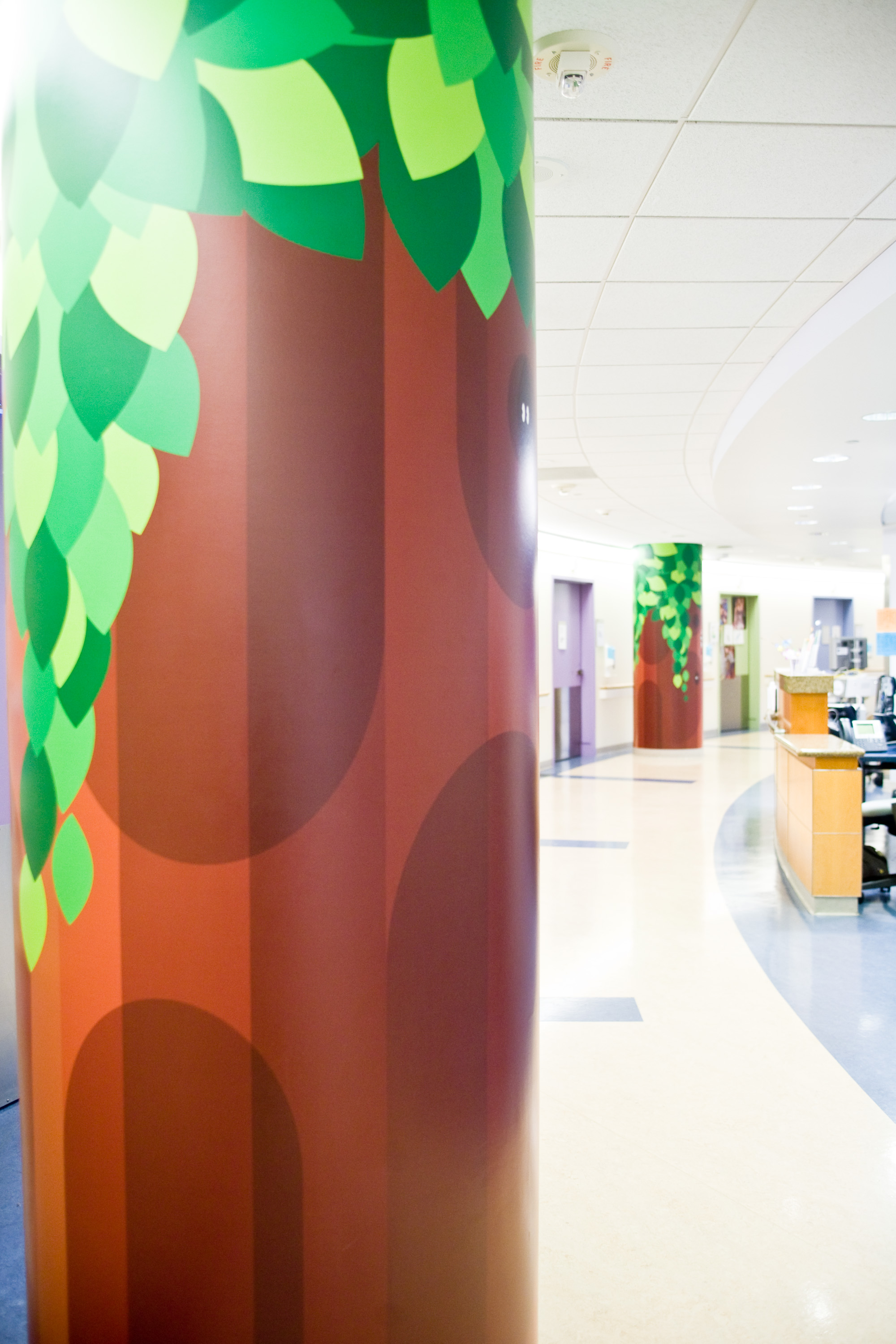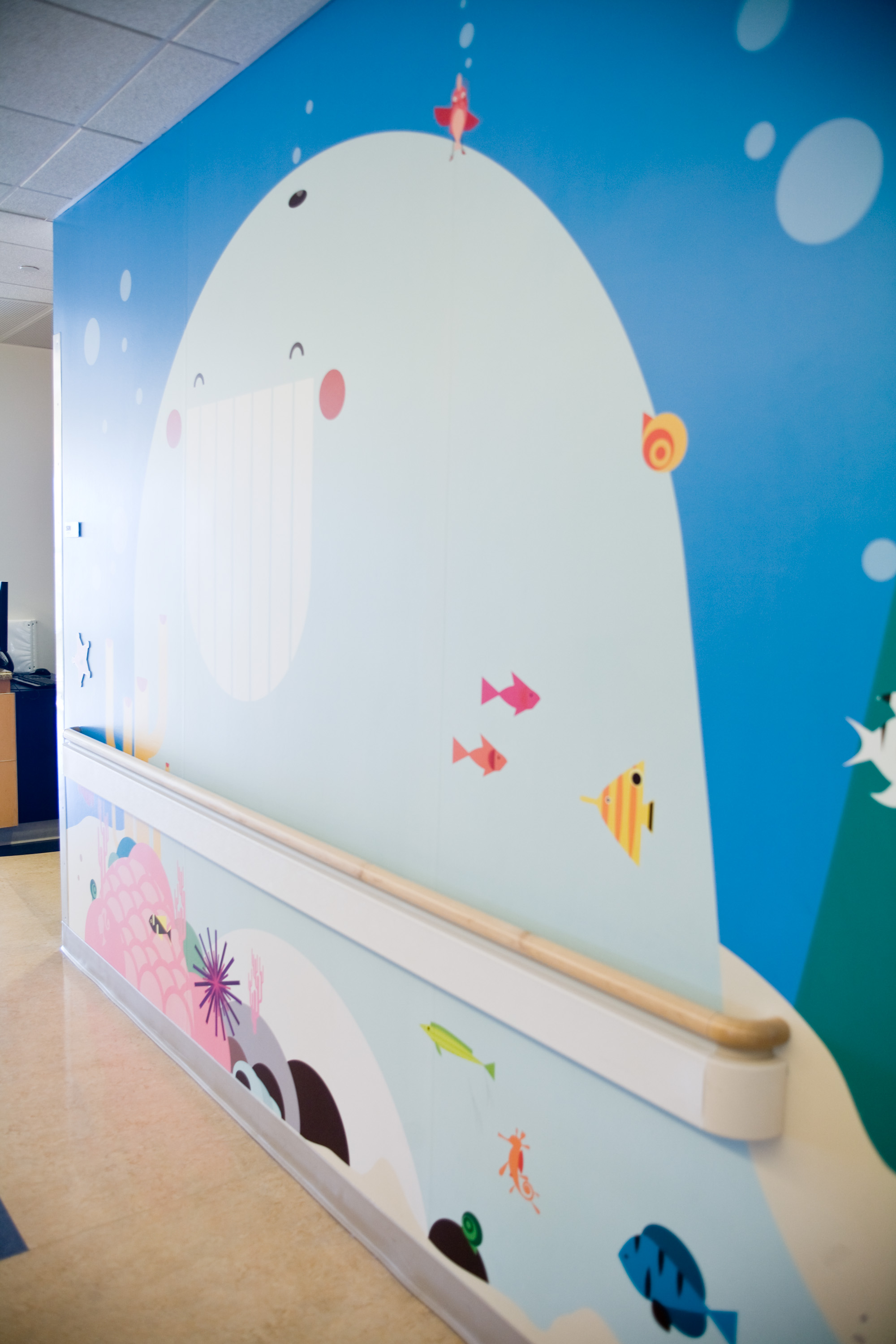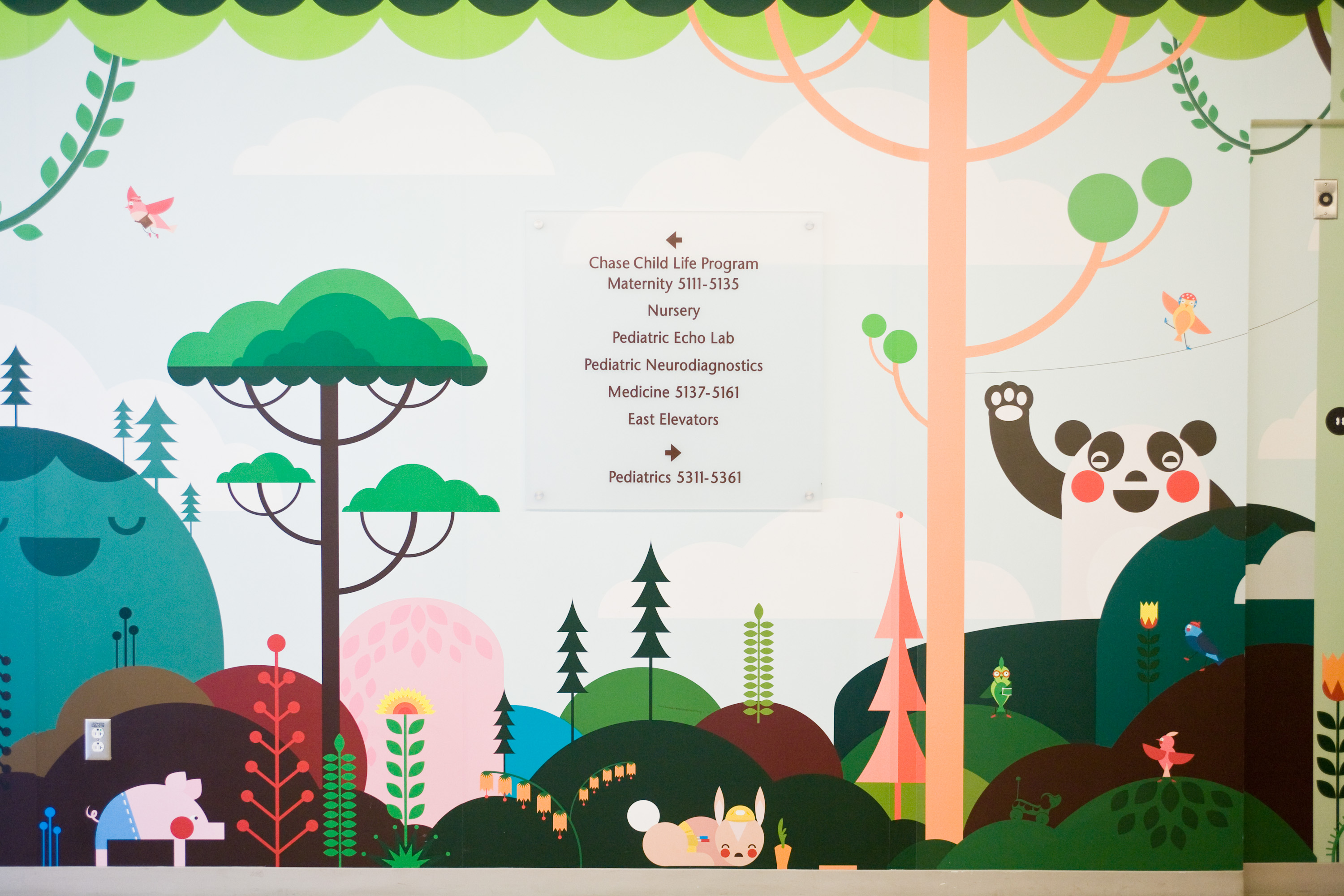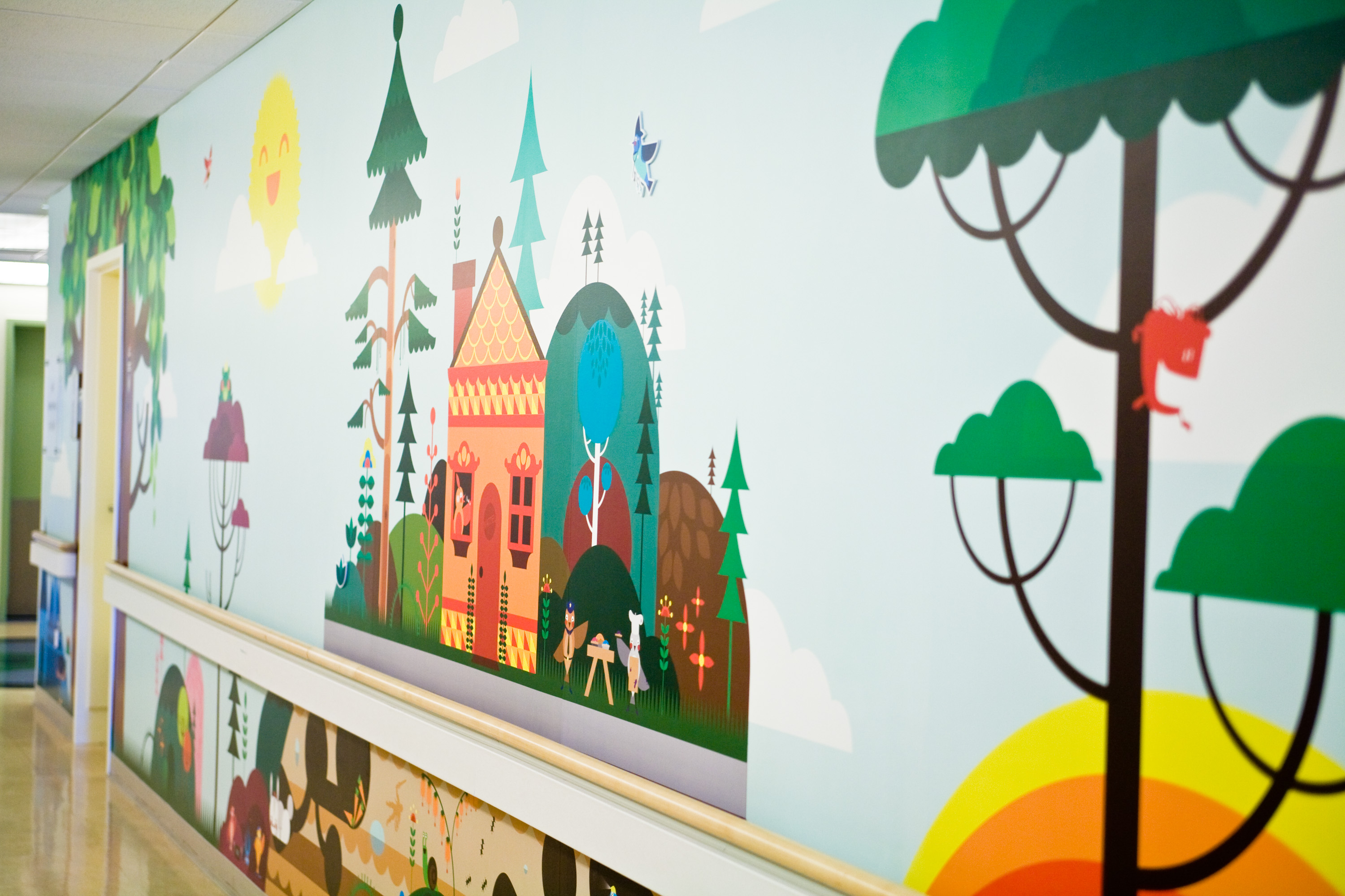 "One child was so excited to see all the characters around the wall, she walked all around the unit, despite her discomfort following surgery. The young girl said she wanted 'to see all of the pictures' before returning to her room," remarks Amy Bullock, director of UCLA's Chase Child Life department. "The murals add positivity to the unit and put smiles on everyone's faces."