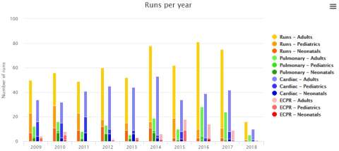 From 2008 to 2014, ECMO use in the United States has seen a drastic increase in nearly all indications. Although ECMO has been in use since 1972, the complexity of the devices and physician skillsets precluded its widespread use for several decades. This Figure from our group’s investigation of national trends in ECMO use illustrates the rapid growth of this technology across the U.S. with a nearly five-fold increase in the past eight years. The growth for various indications are also shown here.