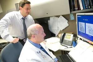 The echocardiography laboratory utilizes advanced equipment and technology from several different vendors (Philips, GE, Siemens) for the performance of 2D and Doppler transthoracic imaging, tissue Doppler analysis, 3D echocardiography, and myocardial deformation/strain evaluation. Advanced pediatric echocardiography services also include transesophageal echocardiography. A close relationship exists with the advanced cross sectional imaging program at UCLA which includes cardiac CT, cardiac MRI, perfusion imaging and 3D modeling and printing. Greg Perens MD is the lead for the 3D modeling, printing, and virtual reality program and Paul Finn, MD, an international expert in cardiovascular MRI imaging and technology, directs the congenital cardiac cross-sectional imaging and research programs. In addition to conducting echocardiography services and clinical research, teaching and training is an integral part of the cardiac imaging program overall with seven pediatric cardiology fellows rotating through the echocardiography laboratory, learning both basic and advanced imaging skills over time. Weekly echocardiographic and imaging didactics occur and cover the breadth of congenital cardiac lesions with an emphasis on imaging. As well, twice weekly pediatric cardiology/cardiovascular surgery joint patient conferences are organized for presentation by our laboratory medical staff and fellows, ensuring optimal patient care and also serving as excellent learning experiences for the trainees.