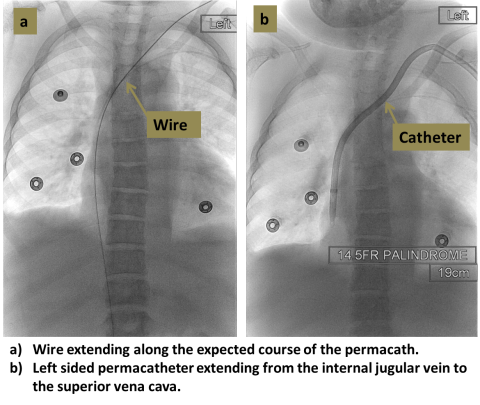 Permacaths provide long-term central venous access for treatments which require high flow rates, such as dialysis or plasmapheresis.