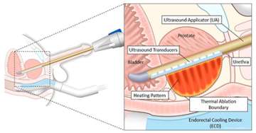 TULSA relies on a rod-shaped device that is inserted into the urethra. The novel device has 10 ultrasound-generating elements that can cover the entire prostate gland. One or more of the elements are used to send out sound waves that heat and destroy the target prostate tissue. The elements are controlled automatically by a software algorithm that can adjust the shape, direction and strength of the therapeutic ultrasound beam. The entire procedure takes place in an MRI scanner so that doctors can closely monitor treatment and assess the degree and location of heating.