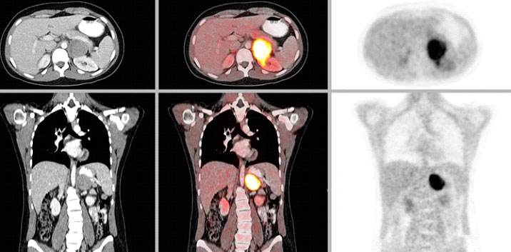 CT or MRI of the abdomen will almost always identify a pheochromocytoma. Additional specialized imaging such as MIBG (meta-iodobenzylguanidine) or Ga-68 Dotatate PET/CT scan can help to confirm a pheochromocytoma and identify multiple tumors or metastatic spread.