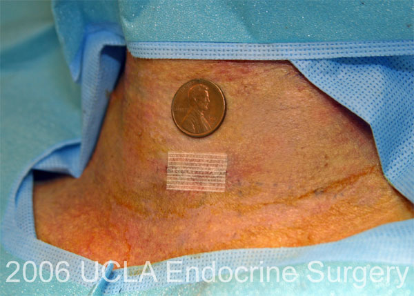 All other things being equal, a small incision is nice to have. The reason we put incision size somewhat lower down on this priority list is that, at present, there is really not much difference in the incision sizes offered by expert parathyroid surgeons. They are all around 1 inch (2.5 cm). We do pay attention to incision length and cosmetic appearance because the neck is a difficult part of the body to cover up, and a significant number of our patients make a living on camera (see our Scar gallery).