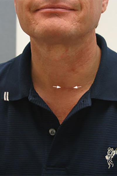 We use either a focused lateral mini-incision technique or a central mini-incision technique. An incision length of approximately 2.0 cm (about ¾ inch) is used regardless of the approach and regardless of how many parathyroid glands are examined. Sometimes, in large or obese people, the incision is slightly longer. The operation is done under direct vision, without the use of a videoendoscope. In our opinion, this technique provides direct access to the parathyroid glands, minimizes tissue injury, and has superior cosmetic results.