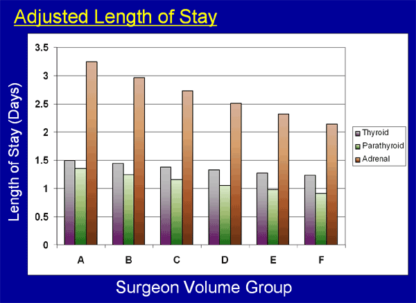 - Increasing surgeon experience is associated with shorter length of hospitalization and reduced cost across all types of endocrine operations