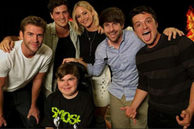 “Hunger Games” stars Jennifer Lawrence, Liam Hemsworth and Josh Hutcherson teamed with 14-year-old Dylan Miceli-Nelson to prank the stars of SMOSH, Anthony Padilla and Ian Hecox, to raise money for Duchenne muscular dystrophy.