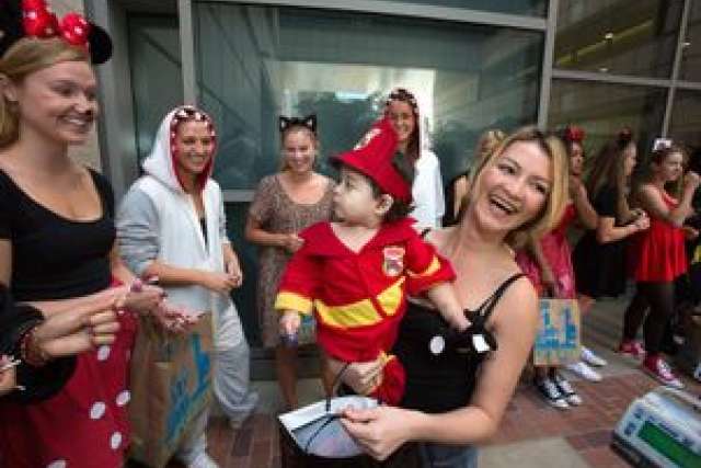 Sick children at UCLA Mattel Children's Hospital got to experience the fun and zaniness of what healthier children will expect on Halloween. Along with their families, costumed patients enjoyed a magic show before stopping at trick-or-treat stations greeted by smiling volunteers, hospital and campus employees, and dogs, all wearing their Halloween best.