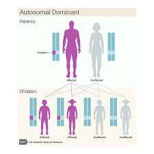 The third pattern of inheritance is called autosomal dominant Alport syndrome (ADAS), in which the mutated gene is on a dominant autosome. 5% of all Alport cases are caused by this inheritance type. This disease has a delayed onset: ERSD typically occurs in middle age.