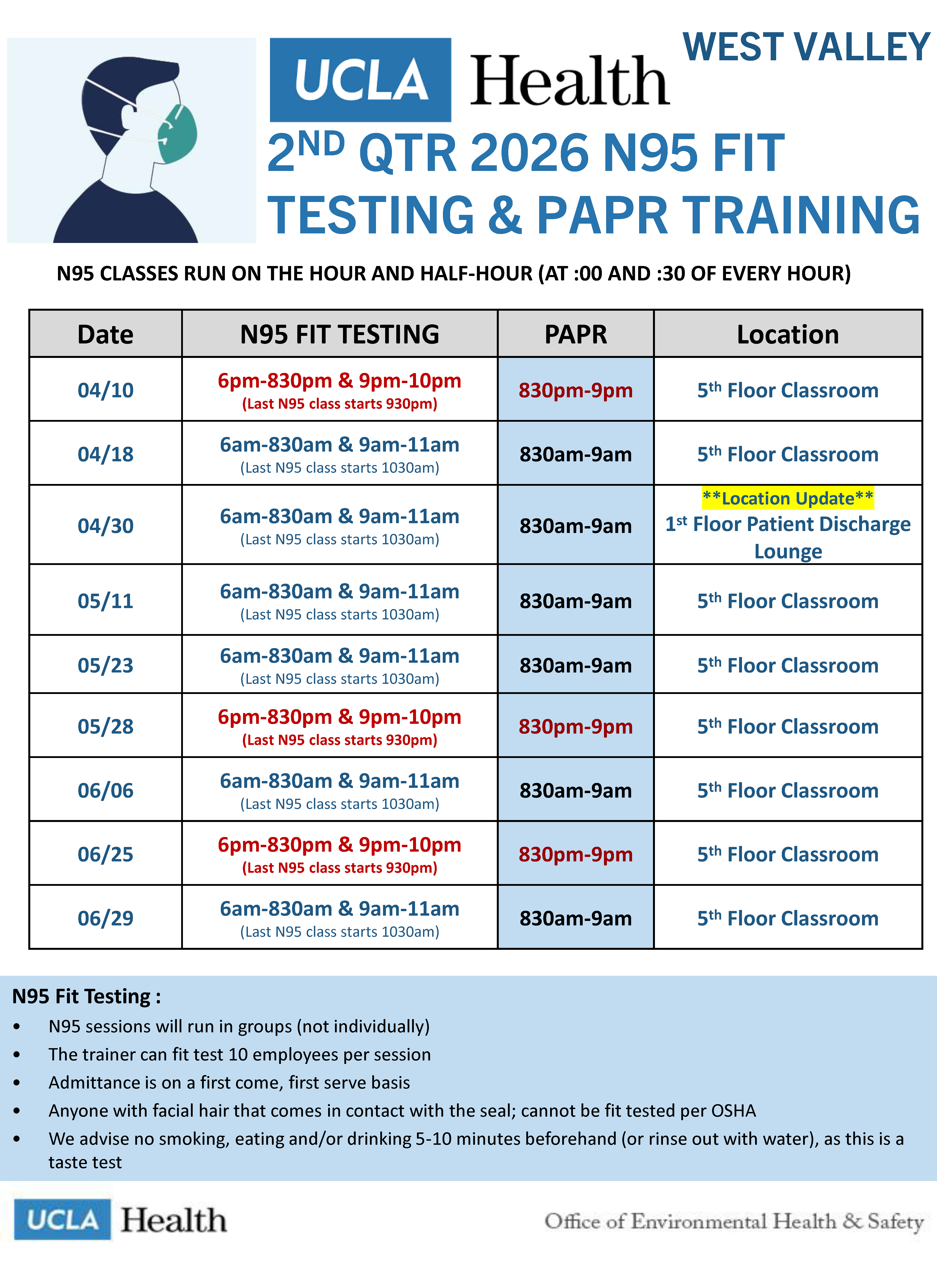 - Santa Monica Fit Testing Schedule - 2nd Quarter 2026